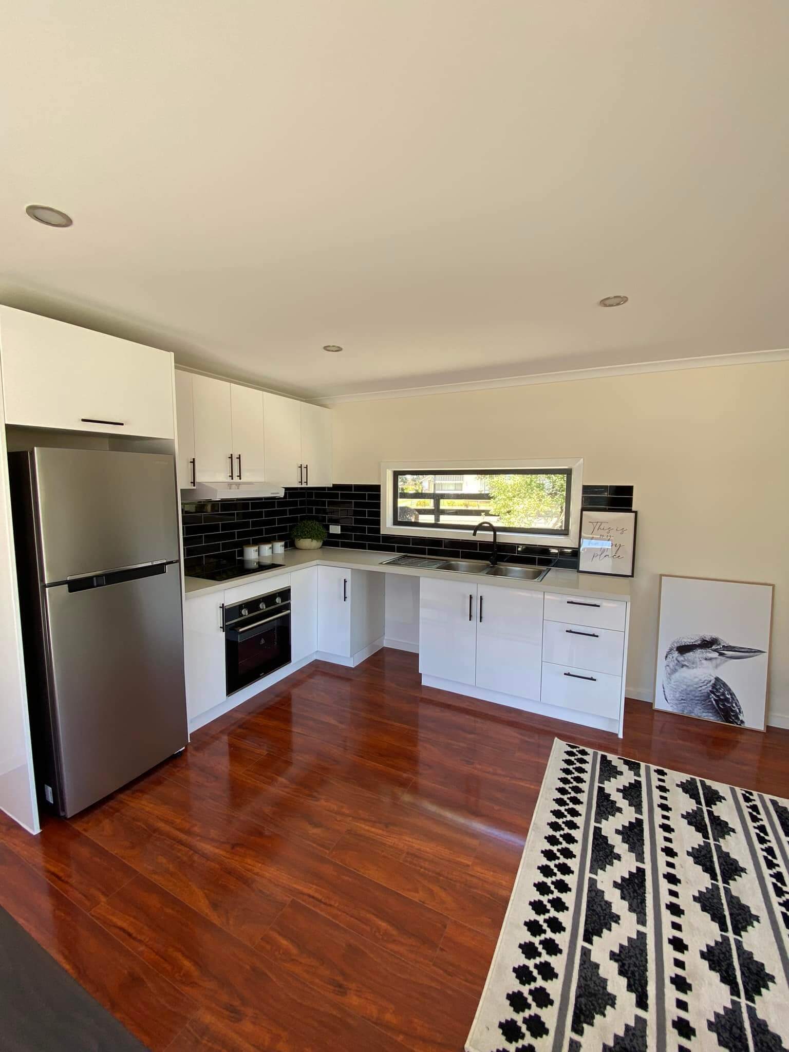 For something different, take a look at our 1 bedroom bungalow style building. This is a small home with a big feel. Featuring a floating timber floor, stone bench tops and a cosy built in veranda. The exterior features include roof with gable ends and rendered walls which can be coloured to your choice.