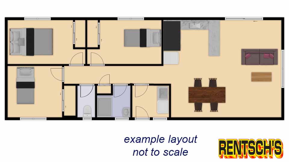 Our extensive range now includes spacious three-bedroom homes, designed for comfortable family living. These homes feature a large, one-piece construction, typically measuring approximately 15 x 5.5 meters. Depending on your location and site requirements, a larger 17 x 5.5 meter option is also available. Each home comes fully equipped with a hot water service, reverse cycle split system air conditioning, a rangehood, comprehensive floor coverings, and an energy-efficient 6-star rating. The low-maintenance Colorbond external cladding completes this exceptional value package.”