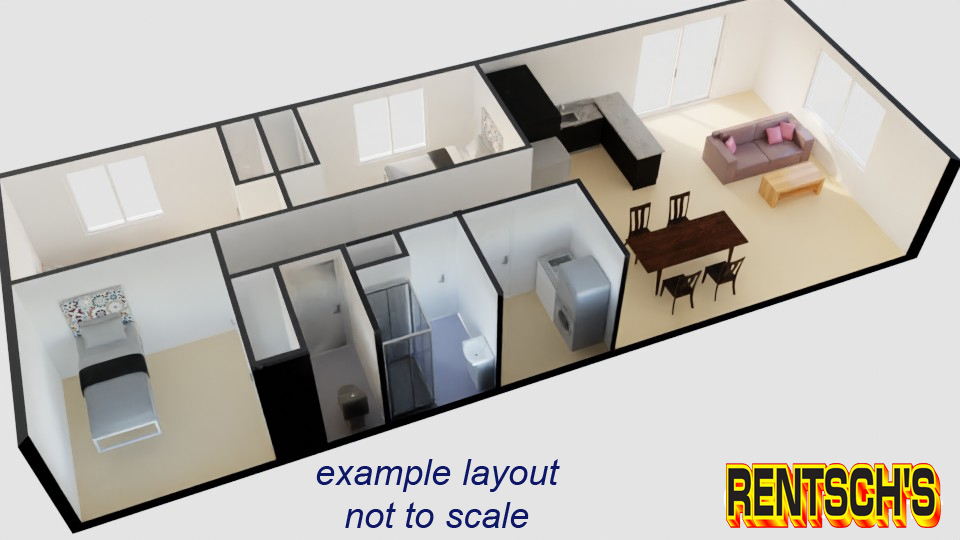 Discover modern comfort and flexibility with our relocatable two-bedroom home. Built with a durable steel frame, low-maintenance Colorbond cladding, and full insulation, this home offers a cozy and efficient living space. Features include two bedrooms, a kitchen, a combined living/dining area, a separate toilet, and a bathroom/laundry – with the option of adding a veranda