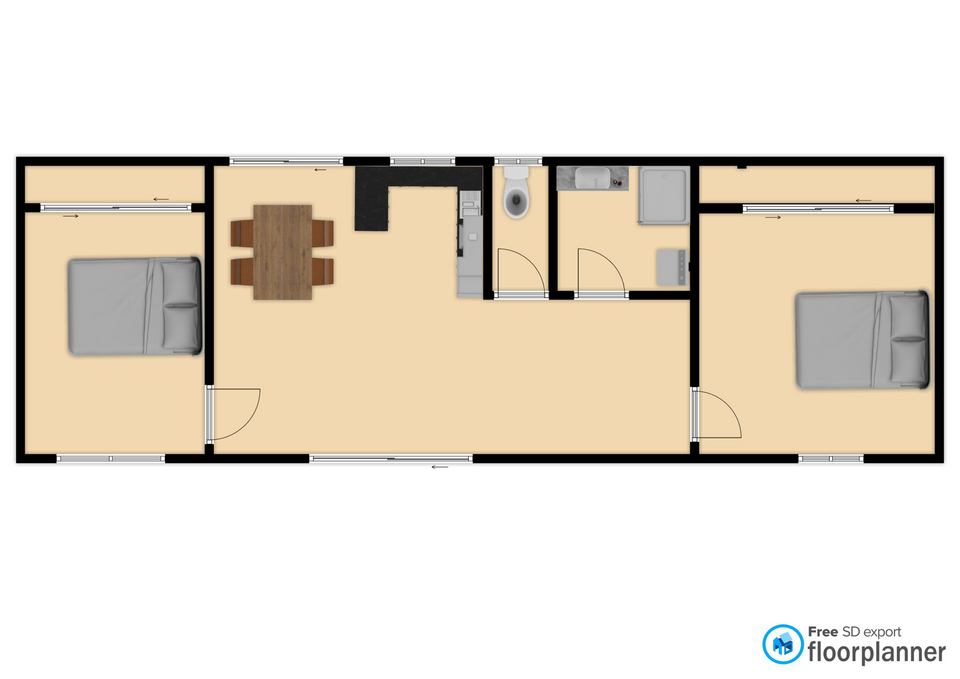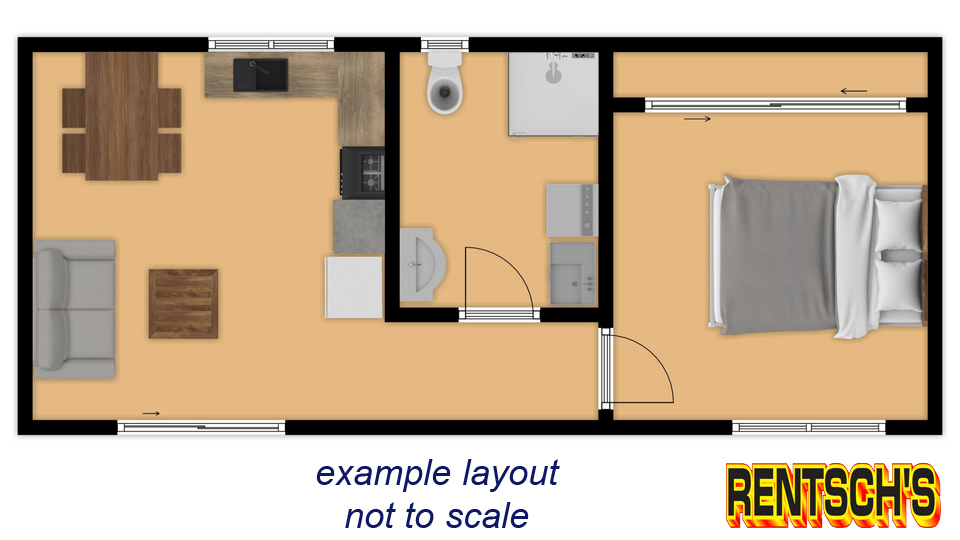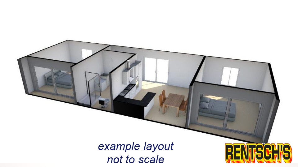 Discover modern comfort and flexibility with our relocatable two-bedroom home. Built with a durable steel frame, low-maintenance Colorbond cladding, and full insulation, this home offers a cozy and efficient living space. Features include two bedrooms, a kitchen, a combined living/dining area, a separate toilet, and a bathroom/laundry – with the option of adding a veranda