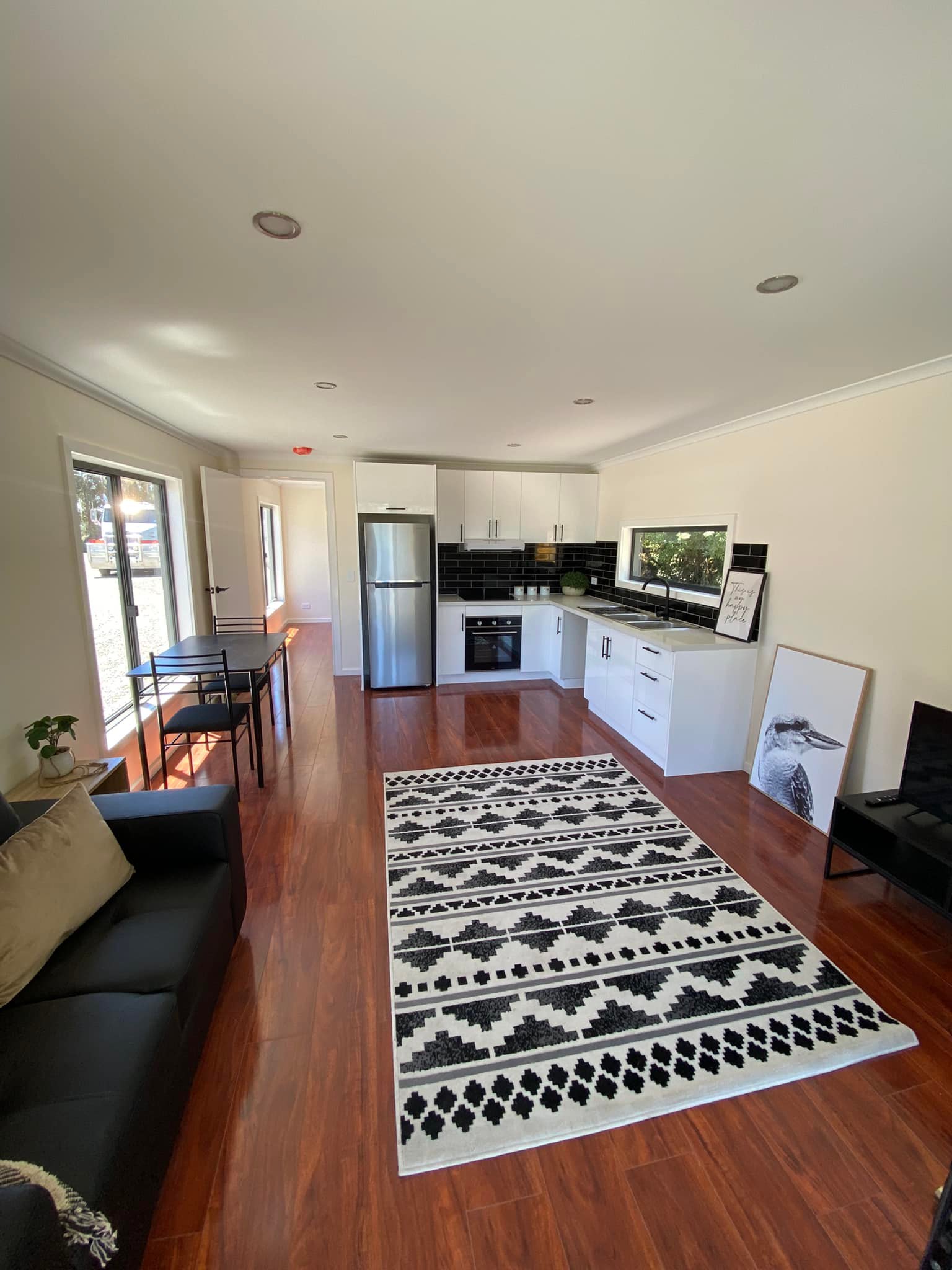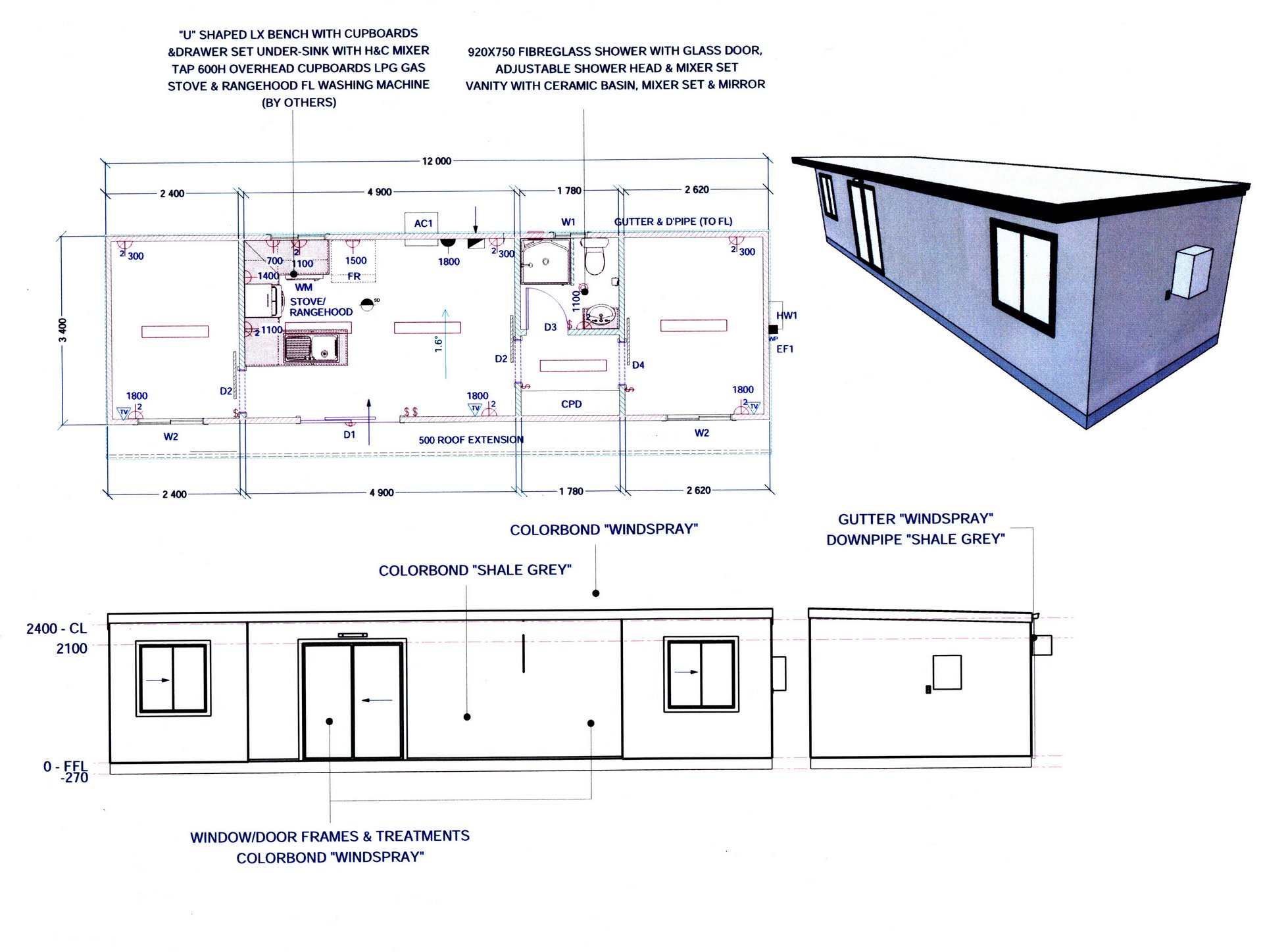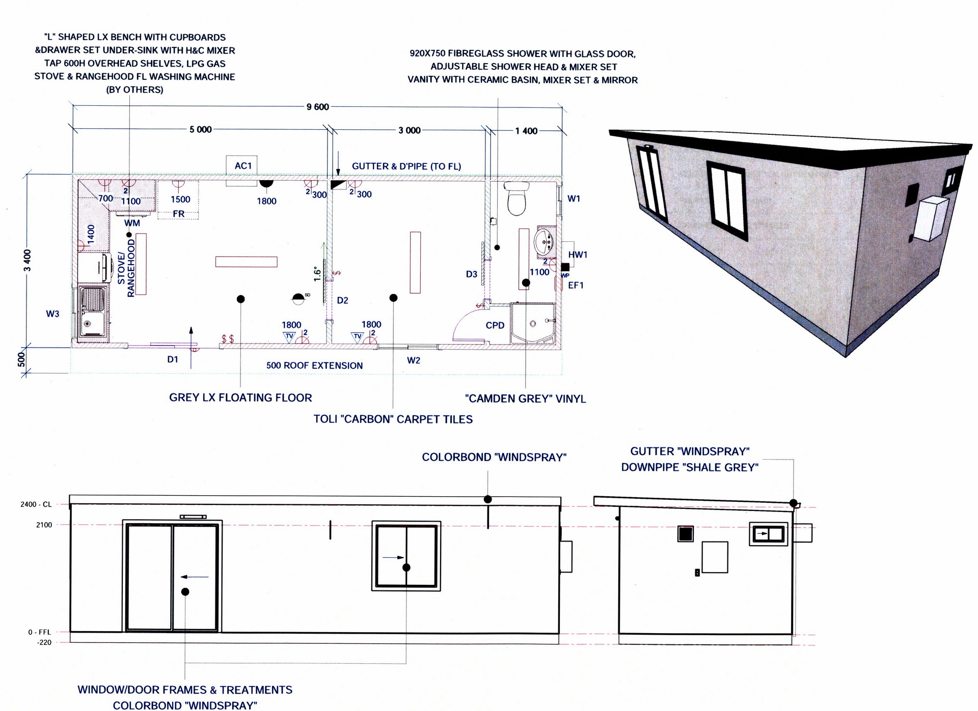 For something different, take a look at our 1 bedroom bungalow style building. This is a small home with a big feel. Featuring a floating timber floor, stone bench tops and a cosy built in veranda. The exterior features include roof with gable ends and rendered walls which can be coloured to your choice.