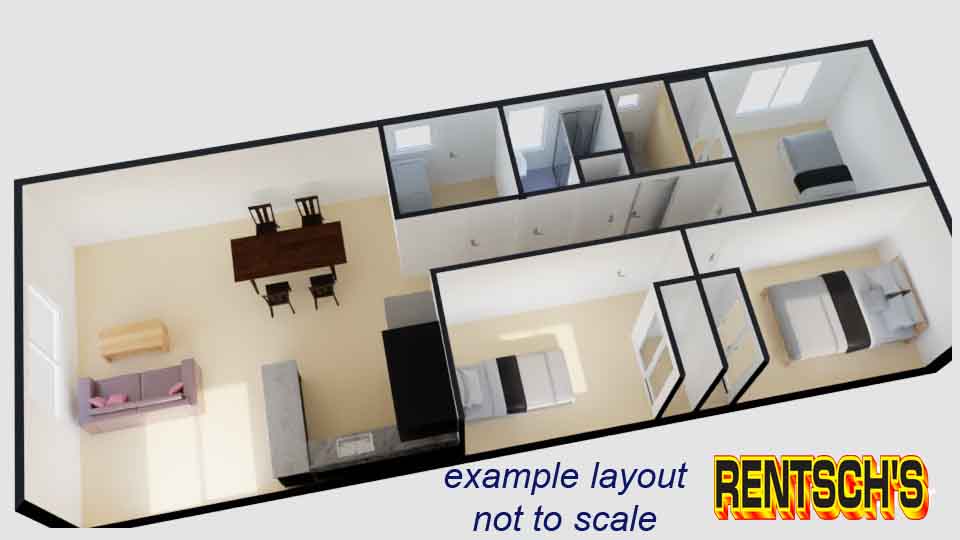 Our extensive range now includes spacious three-bedroom homes, designed for comfortable family living. These homes feature a large, one-piece construction, typically measuring approximately 15 x 5.5 meters. Depending on your location and site requirements, a larger 17 x 5.5 meter option is also available. Each home comes fully equipped with a hot water service, reverse cycle split system air conditioning, a rangehood, comprehensive floor coverings, and an energy-efficient 6-star rating. The low-maintenance Colorbond external cladding completes this exceptional value package.”